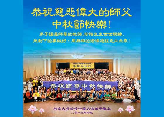 “海上升明月,天涯共此时”。大法弘传,中秋感怀。中国传统的中秋节即将来临之际,多伦多法轮功学员恭祝师父中秋节快乐!