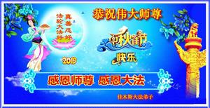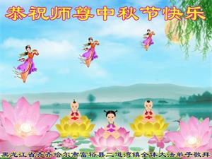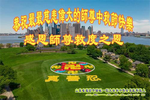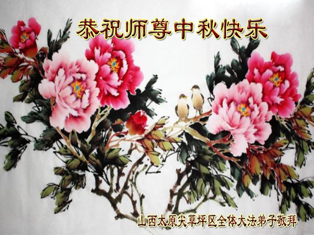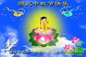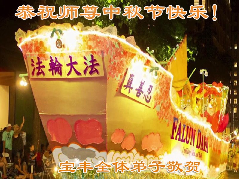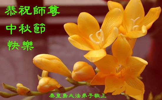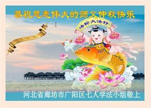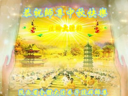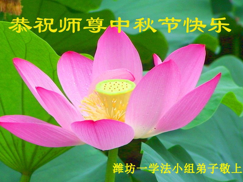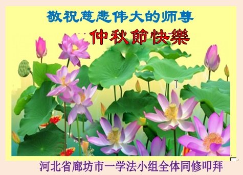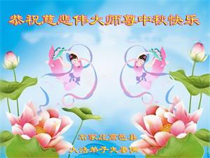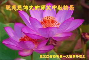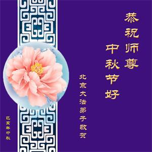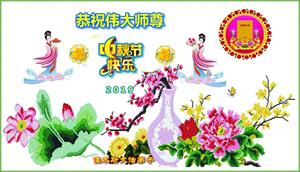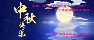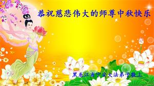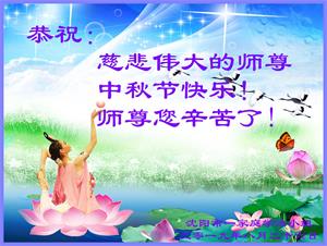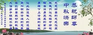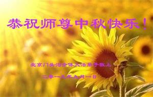 ![]() 图1:中国传统的中秋节即将来临之际,多伦多法轮功学员恭祝师父中秋节快乐! |