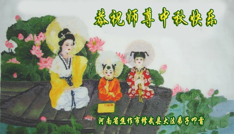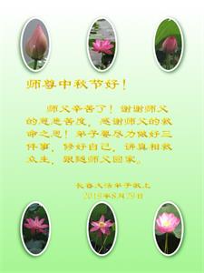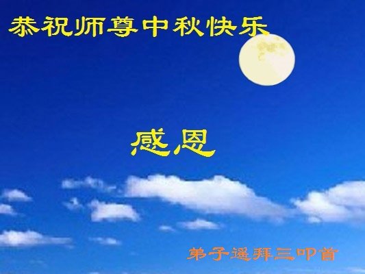慈悲伟大的师父您好!您辛苦了!弟子全家和明真相的姐姐妹妹恭祝您中秋节快乐!我们无比感谢您的慈悲救度,谢谢您!