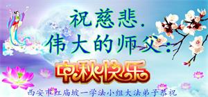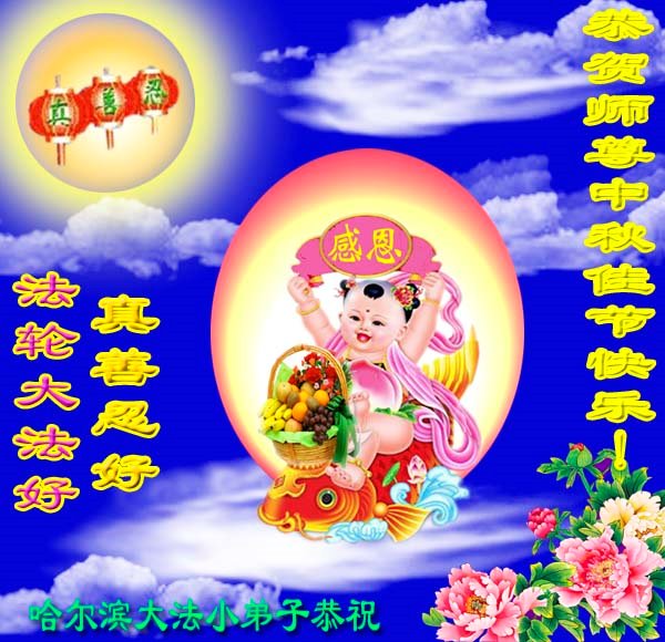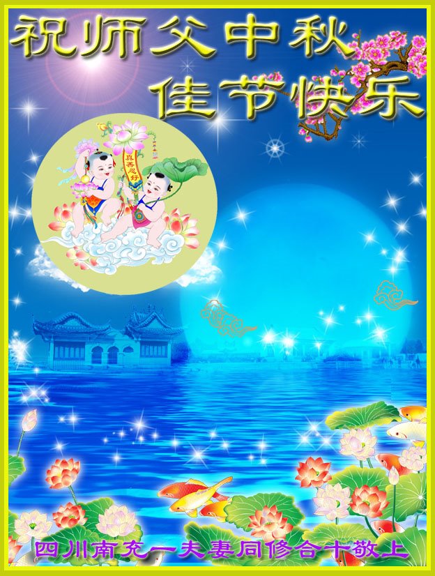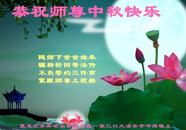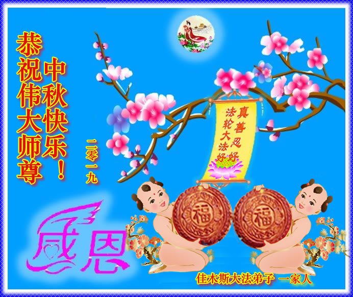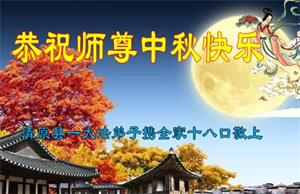 我们全家人感谢大法师父的慈悲看护!恭祝伟大的师父中秋节快乐!