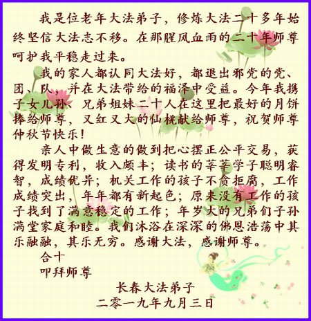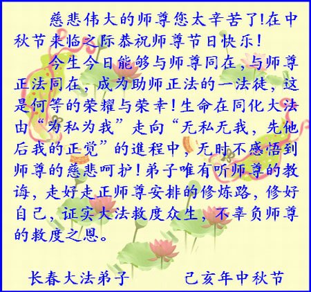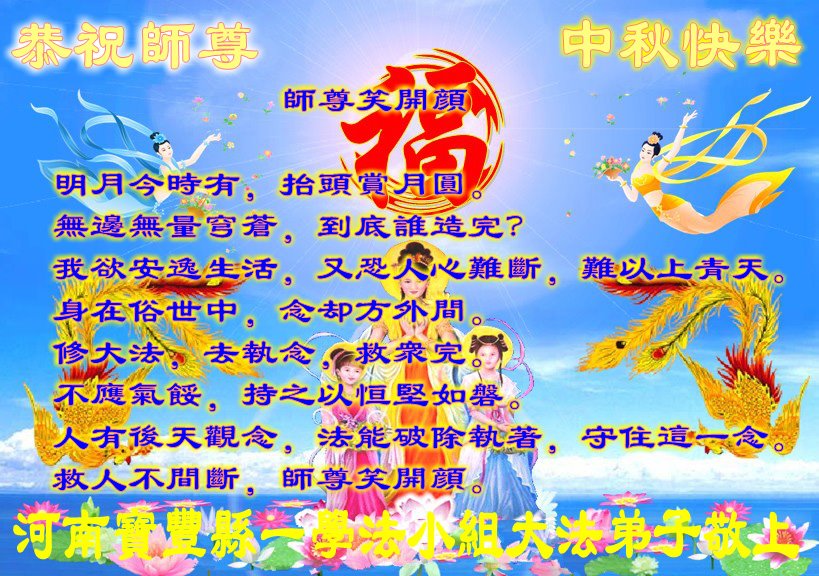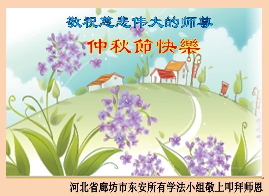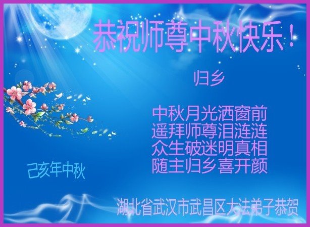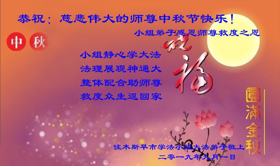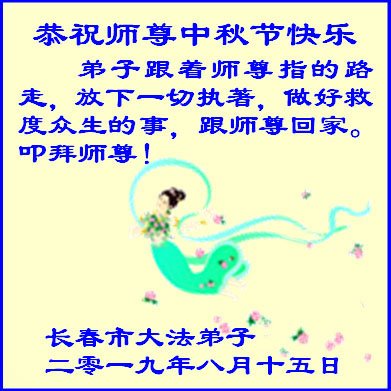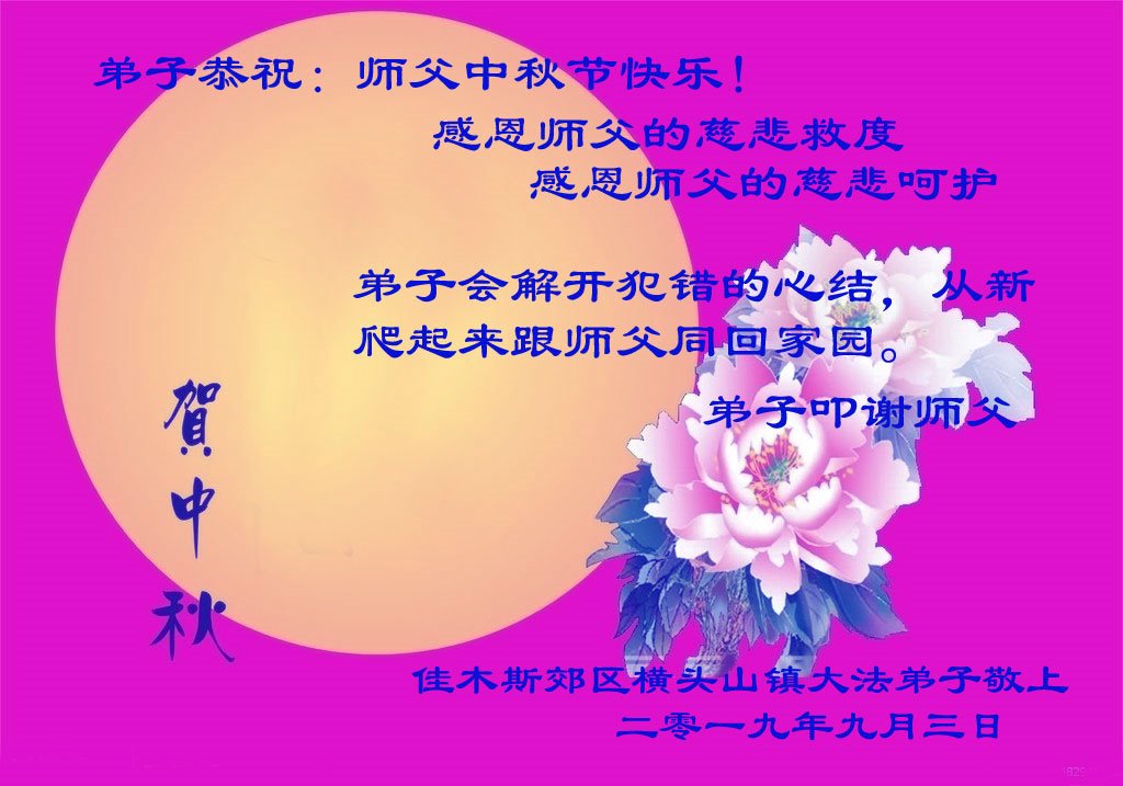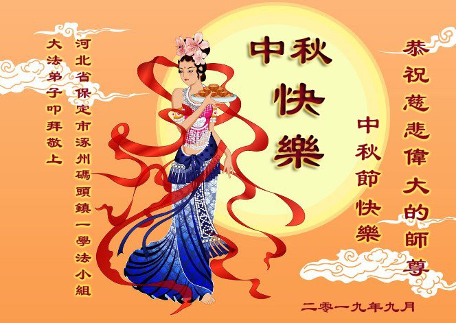 <英文版: http://en.minghui.org/html/articles/2019/9/11/179384.html>中国大陆民众敬祝李大师中秋节快乐