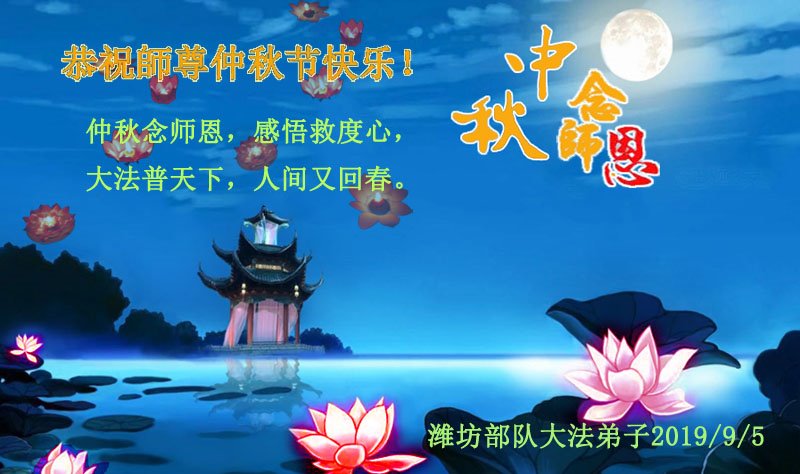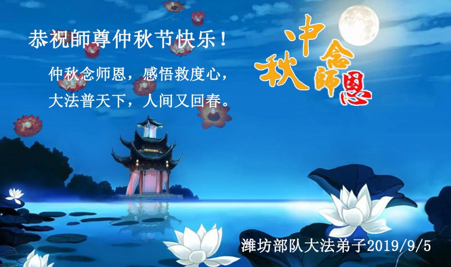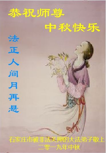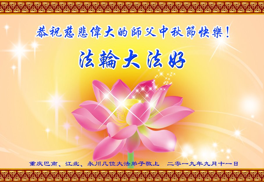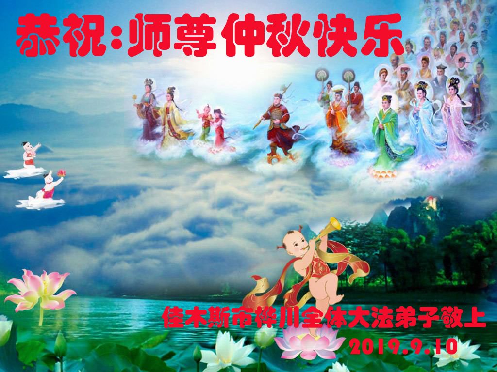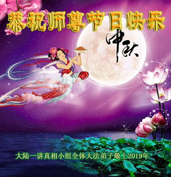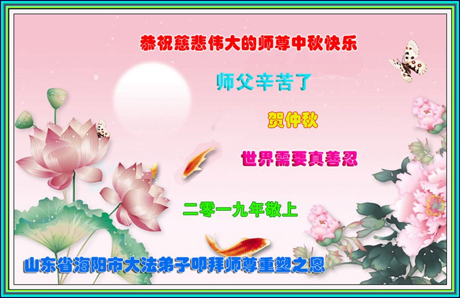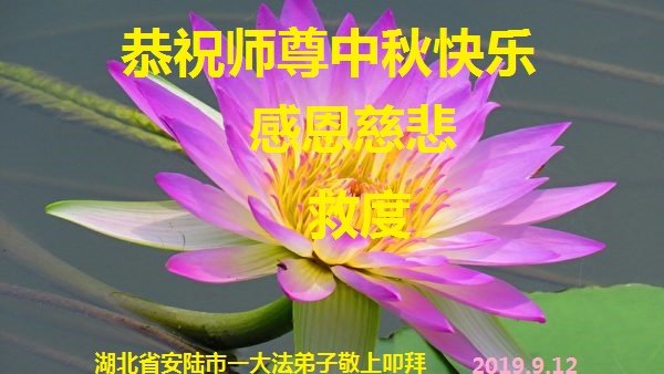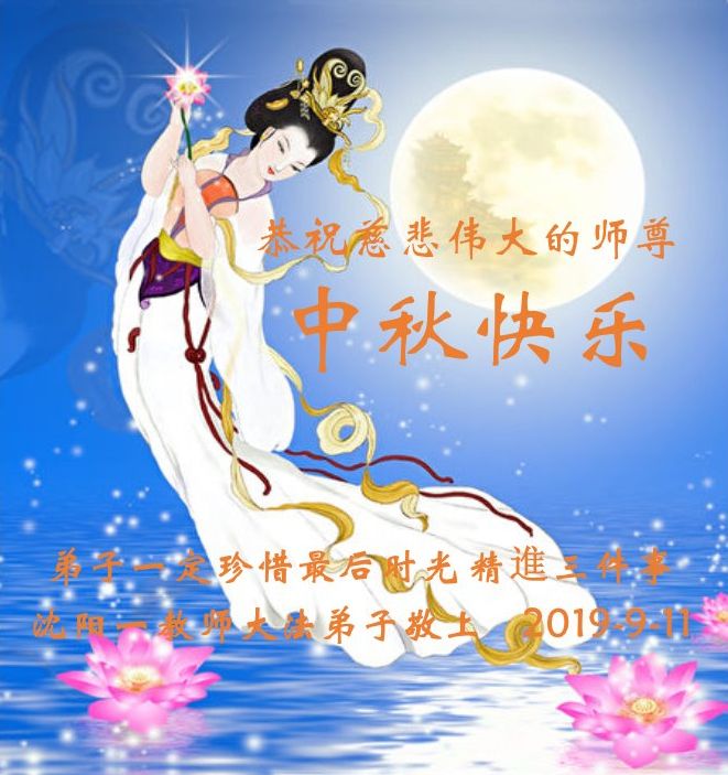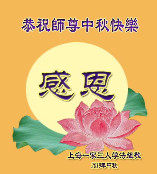 您好!迎来二零一九年中秋月圆,弟子感恩师父给予的作为大法弟子的荣耀和福气!在修炼中走过的艰难岁月,一刻也没有离开过师父的慈悲保护!弟子得到最好的,一切都是源自于慈悲伟大的师父!