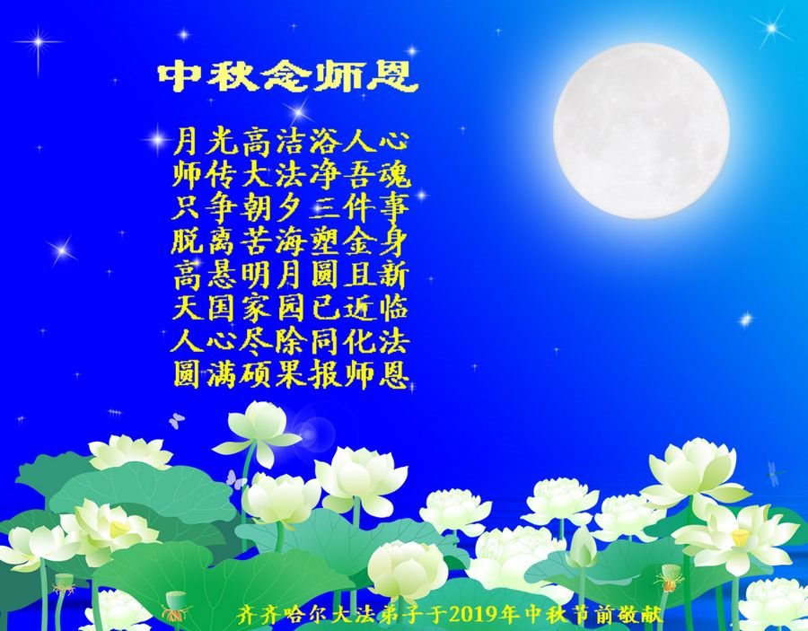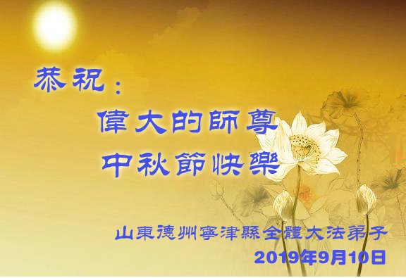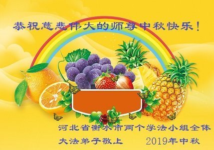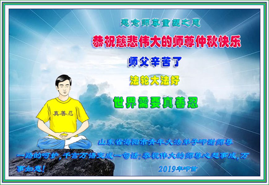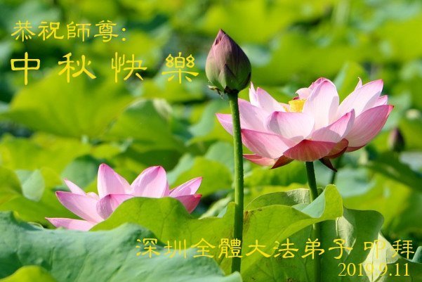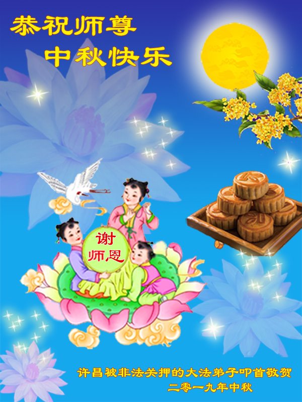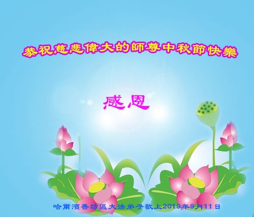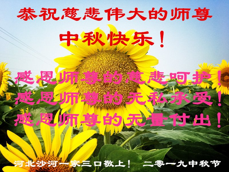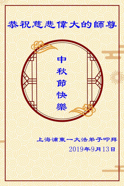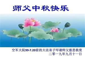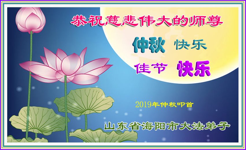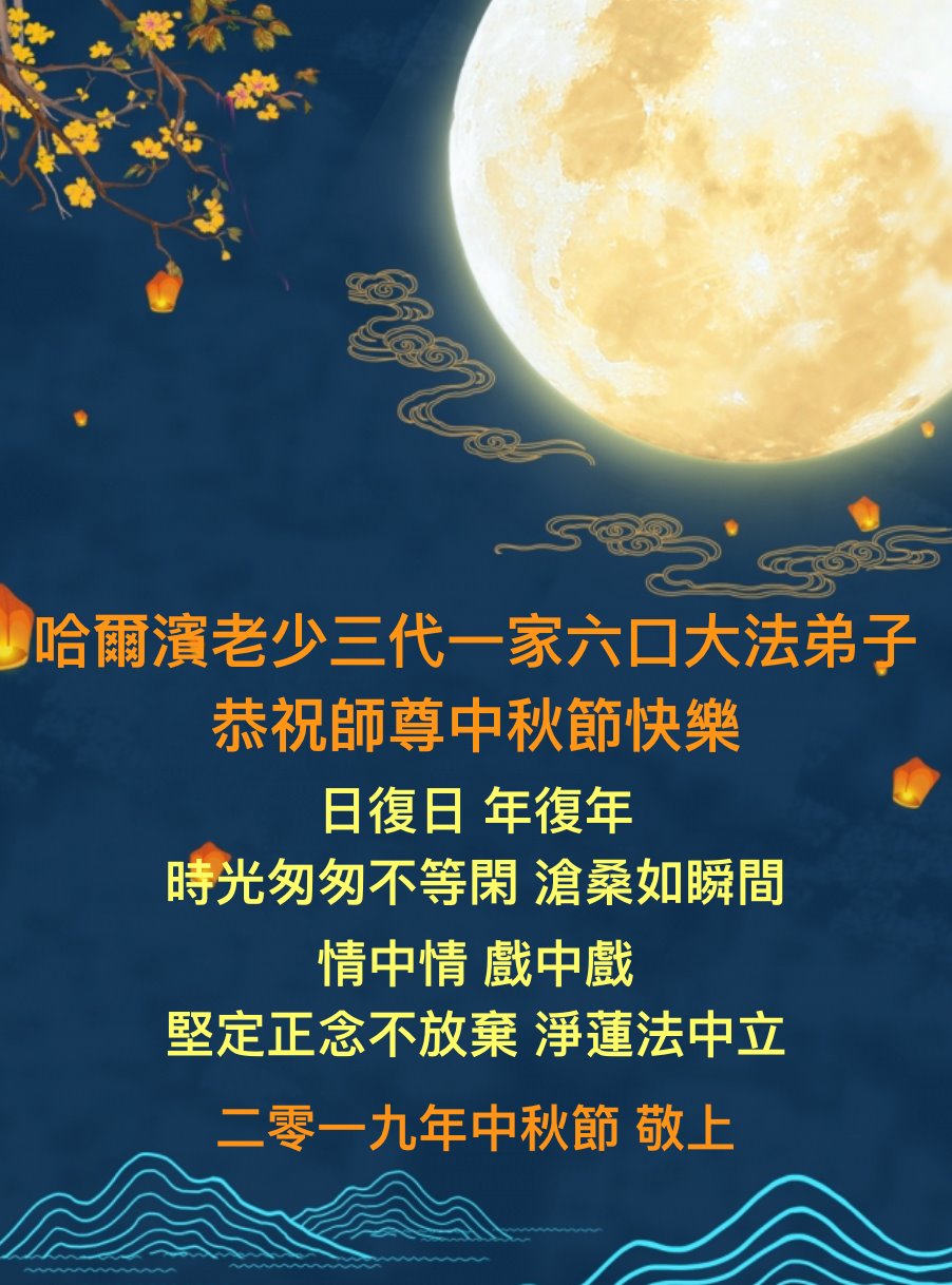 您好!迎来二零一九年中秋月圆,弟子感恩师父给予的作为大法弟子的荣耀和福气!在修炼中走过的艰难岁月,一刻也没有离开过师父的慈悲保护!弟子得到最好的,一切都是源自于慈悲伟大的师父!
