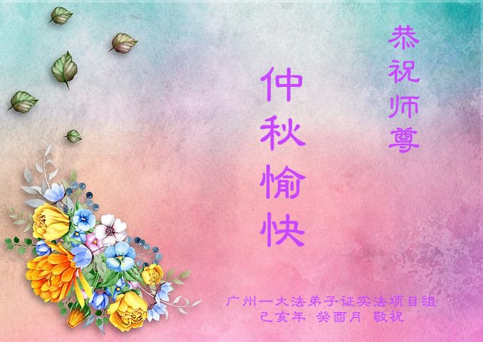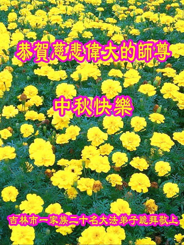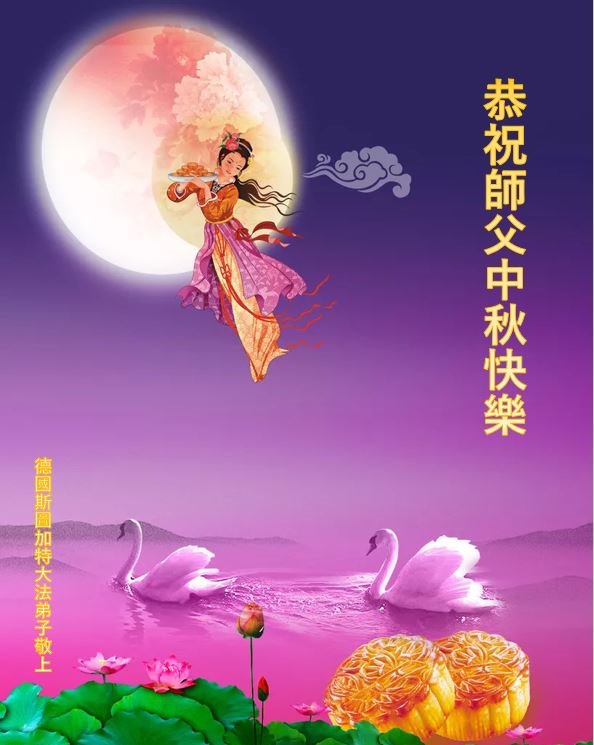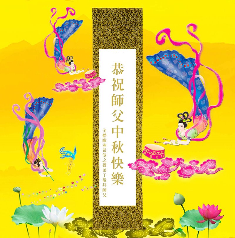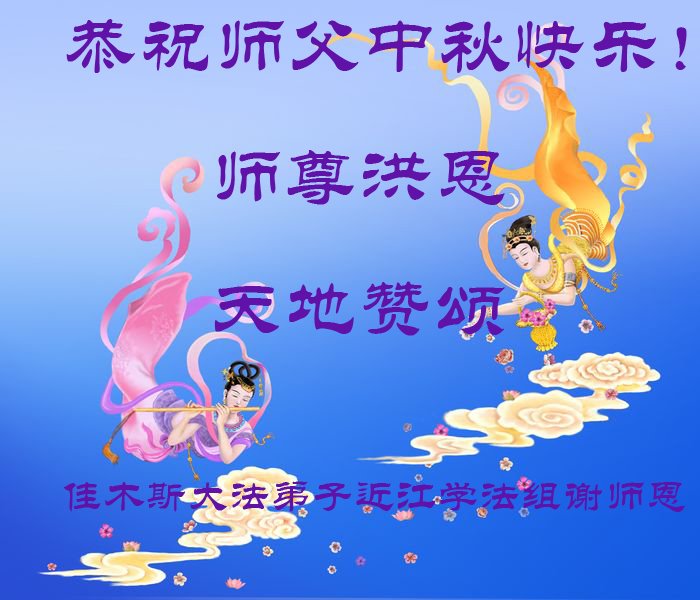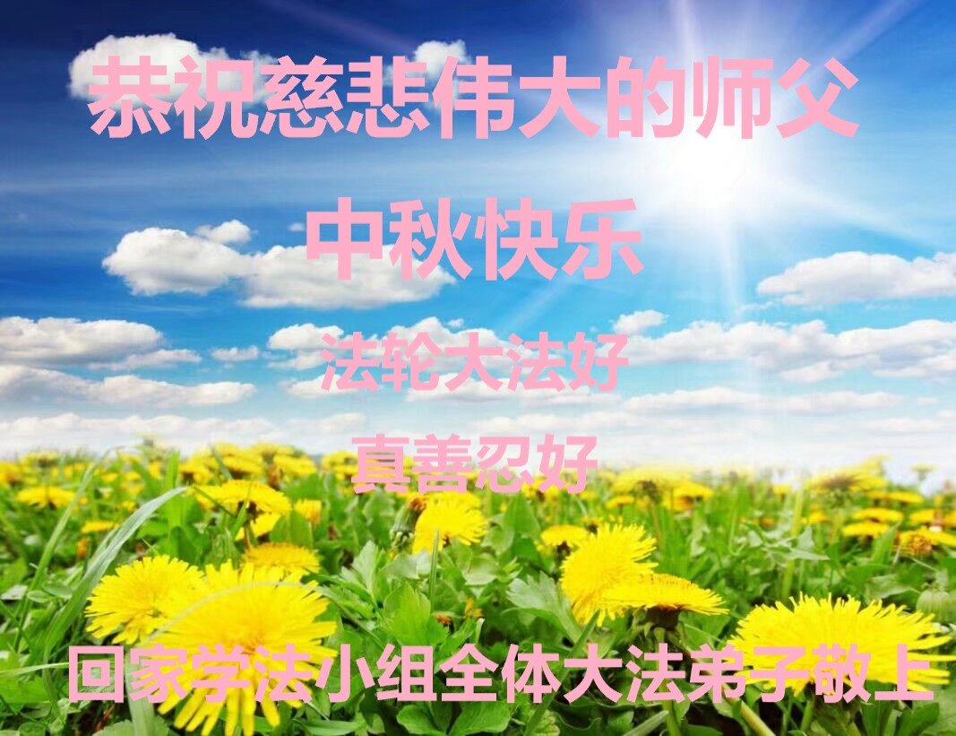 您好!今年的中秋佳节到来了。法国大法弟子在这个敬谢神恩的传统节日里向师尊问好,无限感恩师父的慈悲苦度,恭祝慈悲伟大的师父中秋快乐!