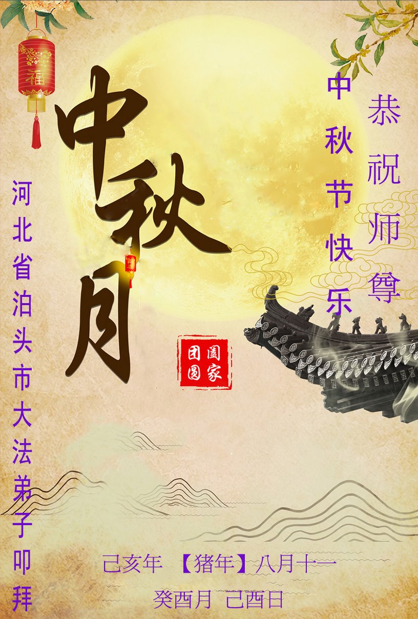 中国大陆各地大法弟子恭祝师尊中秋节快乐!