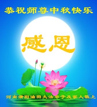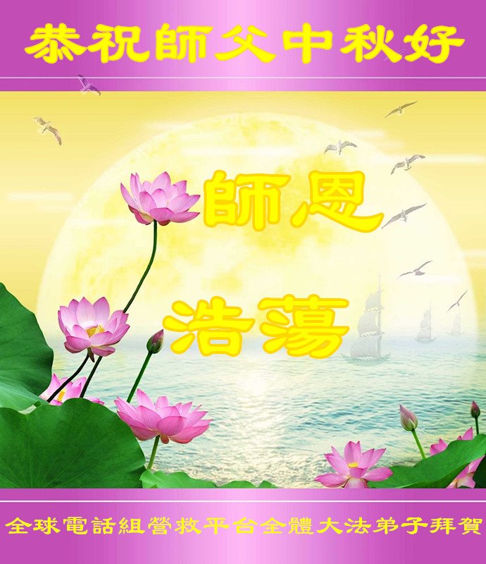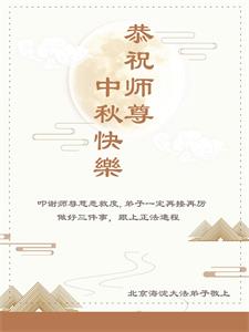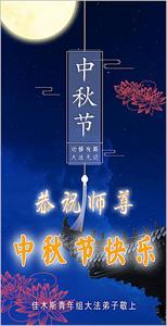 在此,弟子真诚的跪谢师父的慈悲苦度,在最后的时间里,弟子一定时刻谨记师父的循循教诲,以法为师,多学法,正念正行的做好师父安排的三件事,救度更多的众生,完成史前誓约!最后祝师父中秋节快乐!再次谢谢师父的慈悲救度!