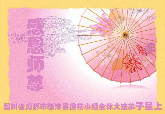 师父为弟子付出的一切辛劳,弟子无限感恩,无以言表!唯有精進修炼以报师恩,把师父的慈悲传给更多的众生,让他们都能从谎言中清醒过来,明白真相,找回自己,不辜负师父的佛恩浩荡!
