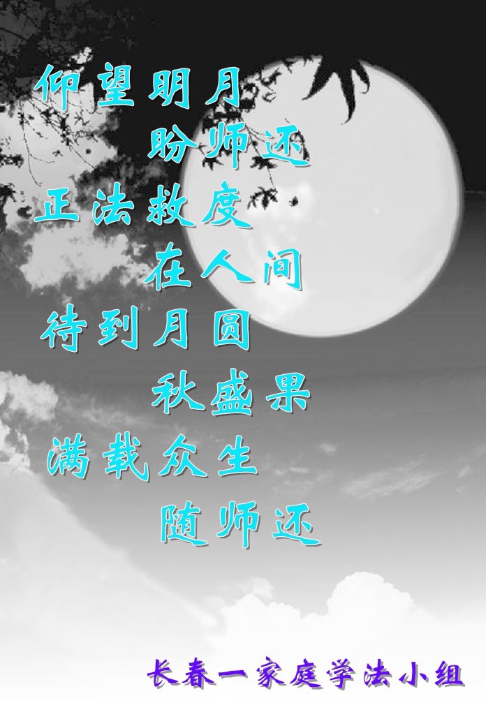 十五的月亮照亮了黑暗,几家团圆,几家悲欢离合。在邪党暴政的统治下,善念良知被践踏,好人被关進监狱,正邪不分。在这十恶毒世之时日,我们在师尊的导航下,冲过重重难关,逆社会潮流而上,展现大法的威力,我们越来越成熟,越来越理智,眼睛越擦越亮,邪恶的手段再玩弄,都是搬起石头砸自己的脚。
