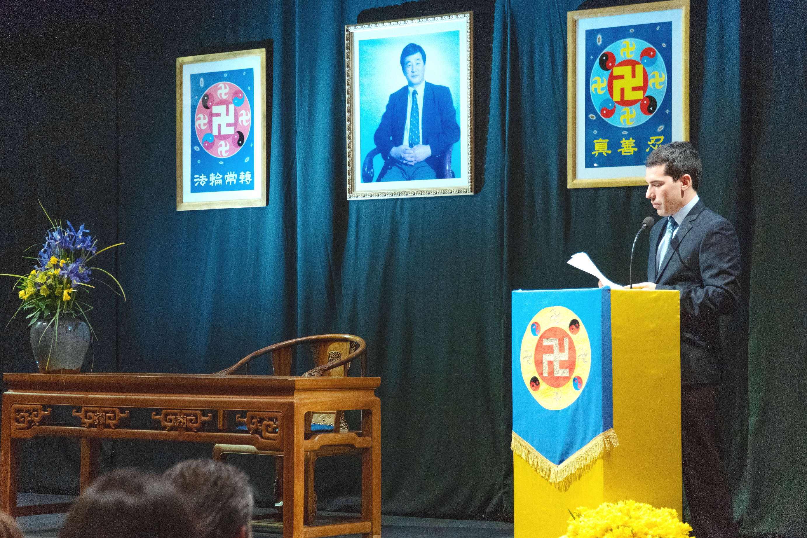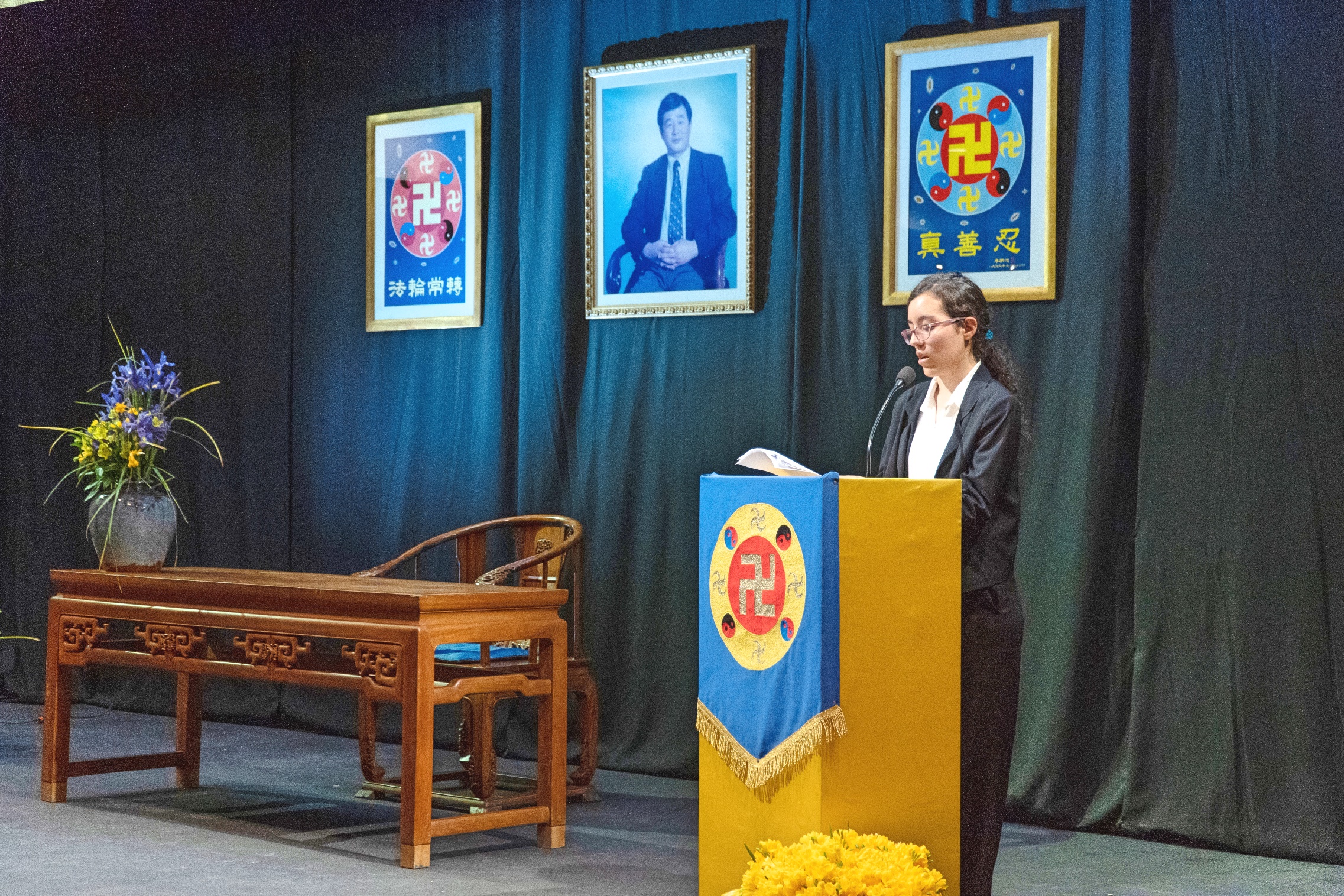 慈悲伟大的师尊给法会致词。在致词中,师尊叮咛学员:“大法修炼与其它宗教和修炼是不同的,因为大法弟子是有使命的,是在个人走向圆满的过程中要救度众生的。”[1]并在致词最后又嘱咐大家:“希望大家多学法,多讲真相,走好每个人的修炼之路。”[1]