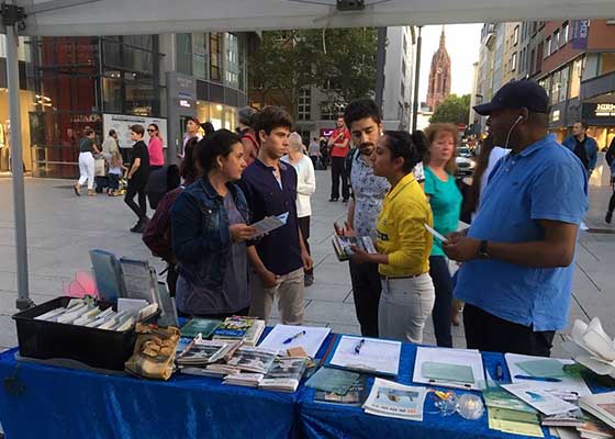 9月12日至22日,在法兰克福的国际汽车展览会期间,法轮功学员向人们讲述法轮功真相。上百名中国人声明退出中共组织。