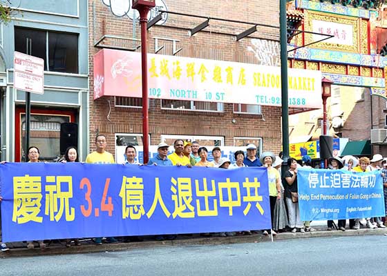 庆三亿四千万华人三退 费城学员在中国城传真相(图)