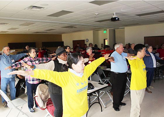 二零二零新年伊始,美国退休协会密苏里分会邀请休士顿学员向会员介绍法轮功。会员被法轮功真善忍的法理所吸引,并且在学功中体验到了能量充满身体。