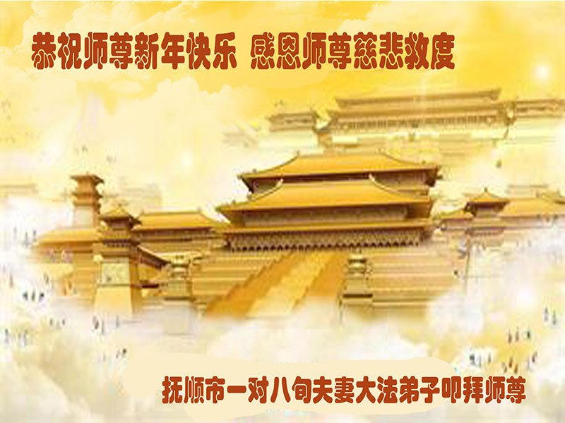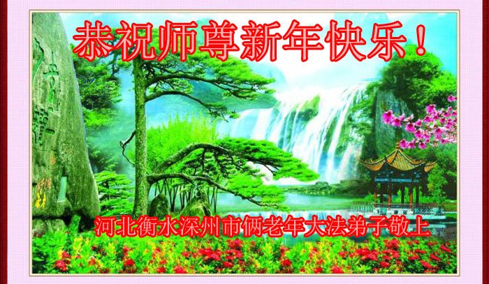 我们老俩口是八、九十岁的老人了,我们因为天天念法轮大法好,身体比以前好的太多了,老伴两次生命出现危险时,都是念大法好、求大法师父救度,才得以转危为安。我们太感谢大法师父了,我们相信您就是来救人的,我们太感谢您了,祝大法师父过年好!