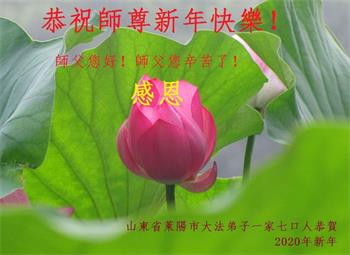 山东烟台莱阳八十八岁的大法弟子的亲人携全家族人恭祝李大师过年好!