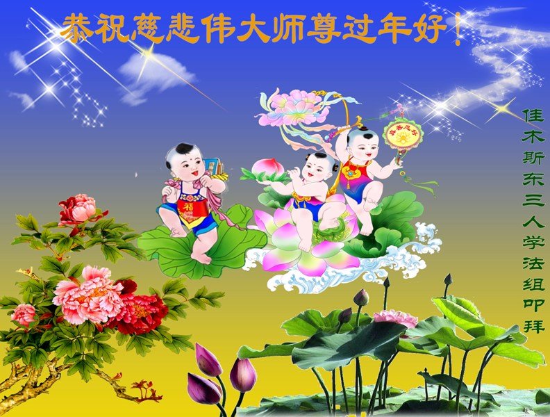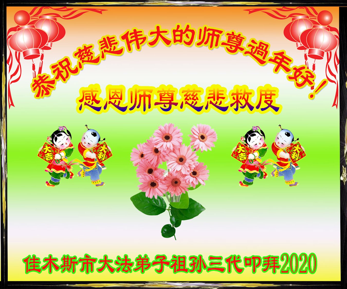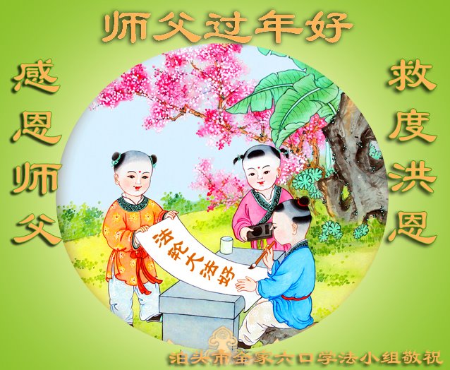 我家十多口老少四代全家人在新春佳节之际,感谢佛恩浩荡,全家人向李洪志大师献上最诚挚的新年祝福和感恩:恭祝李洪志大师过年好!感谢大师将高德大法洪传于世,救度无量众生!