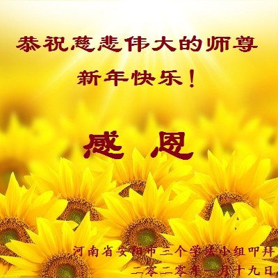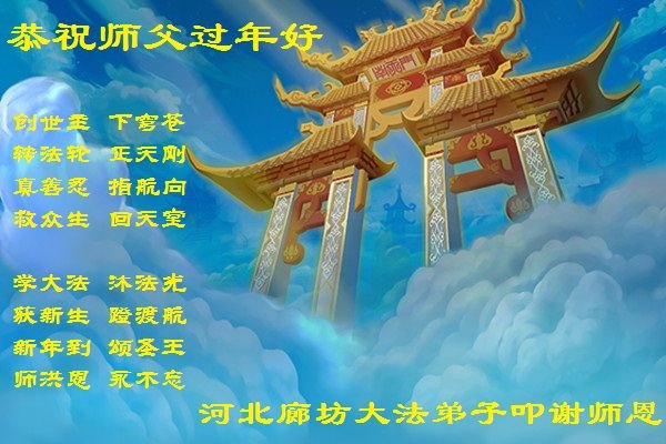 在这新年到来之际,请允许我虔诚的感谢李洪志大师的大恩大德,祝福李大师新年快乐!万事如意!