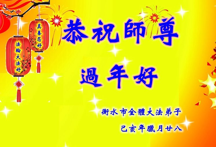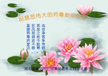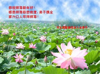 我家兄妹五人,昨天晚上我值班侍候父亲,我跟父亲说,全世界的大法弟子和明白真相的人,都给师父发贺信。父亲听后,眼泪刷一下就下来了。我说您是不是也想恭祝师父新年好?父亲说是。因父母家没有宽带,没法上网,所以今晚替我父亲表达心愿。