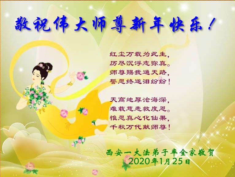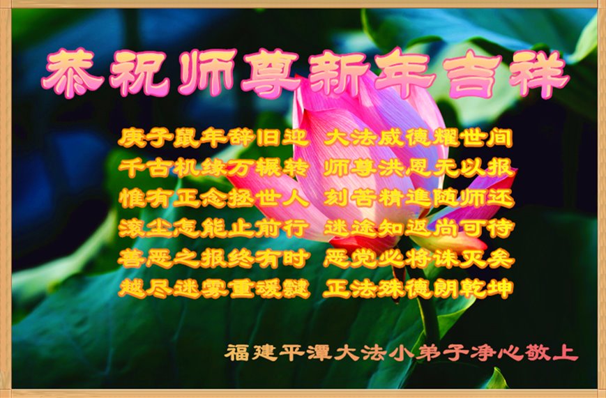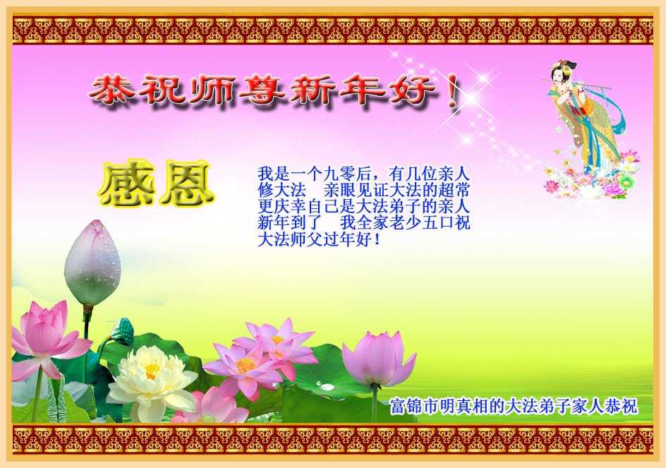 福建福州一大法弟子与明真相得福报的家人恭祝慈悲伟大的师尊新年快乐!感恩师尊的慈悲救度!师尊您辛苦了!弟子想念您!叩拜师尊!