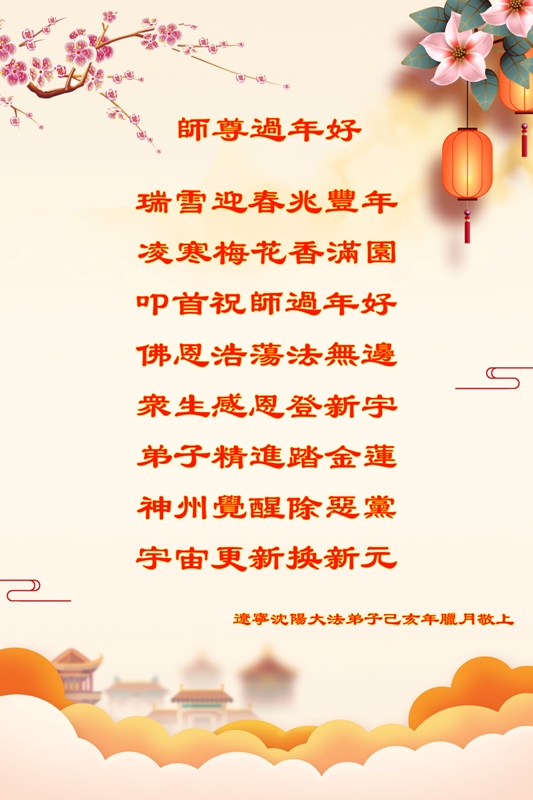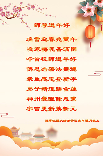 沈阳市一大法弟子与亲人们恭祝慈悲伟大的师父过年好!