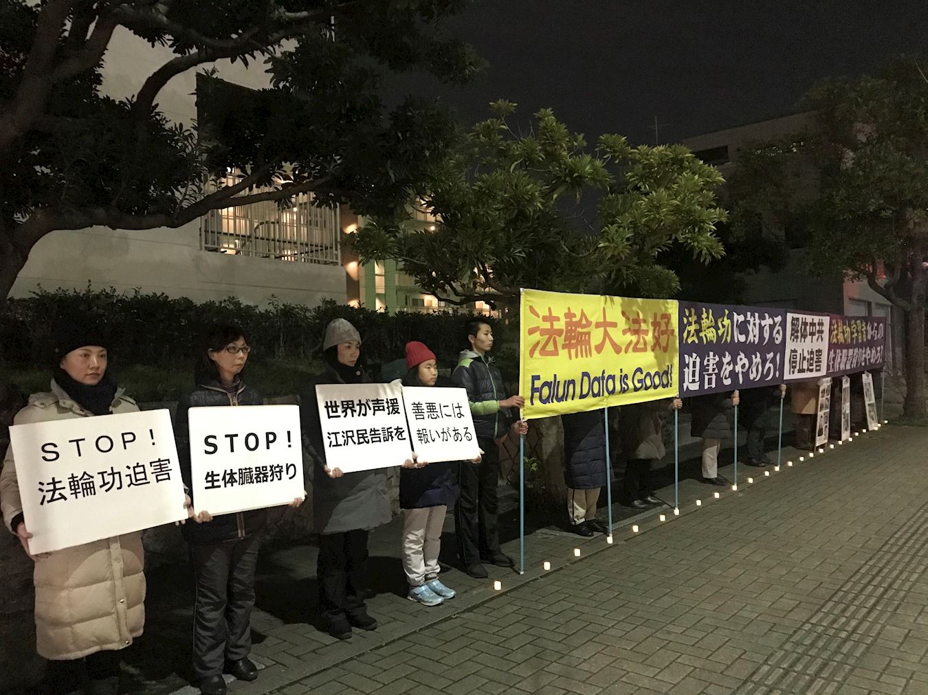 ![]() 图1~2:二零二零年一月二十四日除夕之夜,日本熊本地区法轮功学员在福冈中领馆前抗议中共迫害。 |