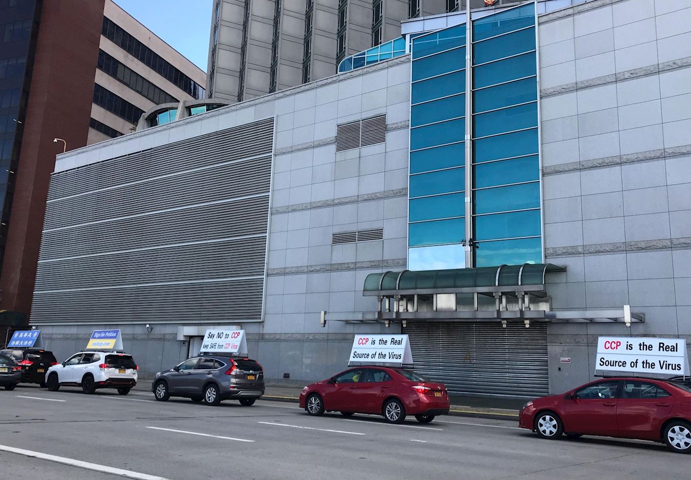 '图6:“解体中共”真相车队途径纽约中领馆'