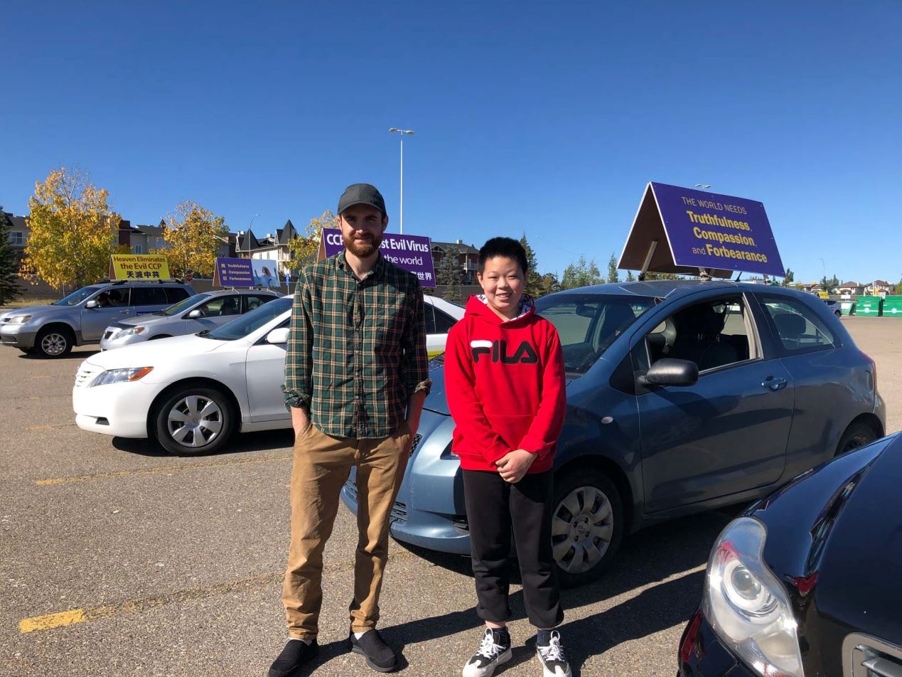 【明慧网二零二零年十月二日】二零二零年九月二十七日,加拿大卡尔加里法轮功学员举办了本地退党月的第九次退党汽车游行。中午十二点半,二十多名法轮功学员聚集在卡城北部的汽车总站停车场,十六辆载着真相展板的汽车排列整齐等待出发。