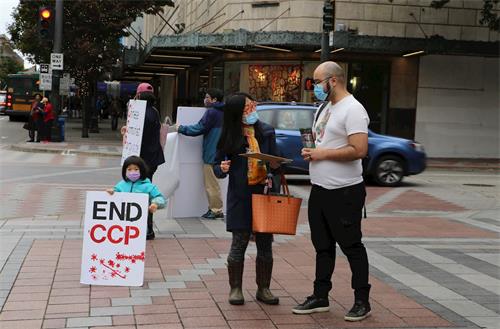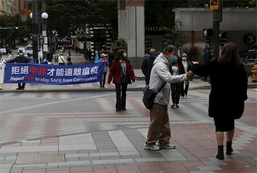 这次活动的主办方西雅图法轮大法佛学会负责人王希外(CY Wong)先生说:中共病毒在全球大流行,造成了世界范围的人们不能够正常的工作、生活,人们渐渐对中共有所认识,我们借这个机会一如既往的讲真相,让人们尽快彻底的真正认清中共邪恶的本质,免于遭难。