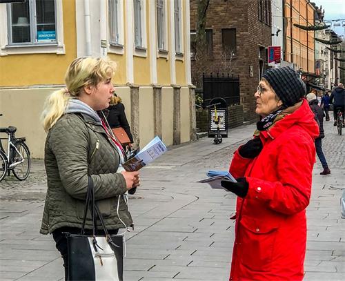 有一次,在公园的椅子上坐着一个同修,同修旁边坐着一个五十七、八岁的男人。同修对我说:“你快过来吧!这位老弟,谁说冲谁去。”我坐下,他就问:“你那老远的跑这来干啥?”我大声的说:“为了救你这样的好人。”他哈哈大笑。我说:“在当今社会上有这么个群体,顶着被抓、被打、坐牢,甚至可能被活体摘取器官的危险,告诉人们怎么能度过劫难,却不图任何回报。现在是末法末劫时期,很多预言都预料到人类有大劫难。二零零二年六月,贵州省平塘县掌布乡发现一块巨石,横断面上惊现六个大字‘中国共产党亡’,很多专家都去考察,断面上的字无任何人工雕凿的痕迹。世人纷纷都在觉醒,上天也在给中国人机会,现在有三亿六千二百多万中国人退出了中共,选择了未来。姐衷心的希望你也能得到大法的救度。”