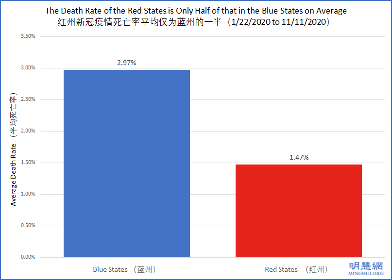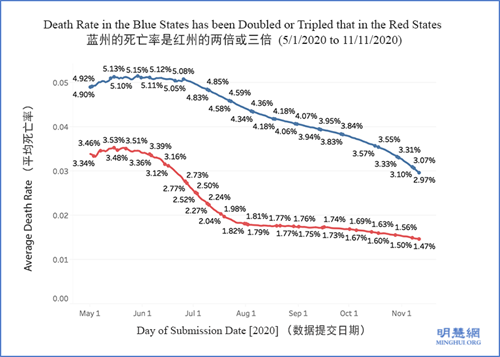 <英文版: http://en.minghui.org/html/articles/2020/11/26/188438.html>新冠病毒死亡率:红州仅为蓝州的一半