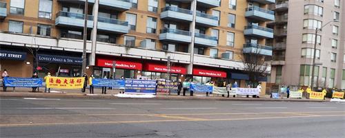 后来干扰就更严重了,今天找我、明天找我,总被骚扰。可他们管不了我的心,更管不了我的腿。我们四个同修又去了北京,怕路上拦截,辗转几趟车到了北京。我们四人分成两组,我把横幅卷起来,缠到胳膊上,用别针别到袖管上。金水桥边都是警察,没法打横幅,我把横幅搭在地铁口的横台上,又怕风吹跑,就在横幅边上看着。这时一下子涌过来好多人围观,我也在人群中。警察跑过来,可是不知道是谁挂的。过程中我很坦然,有什么不坦然的呢,我们证实法,做的是最正的事。