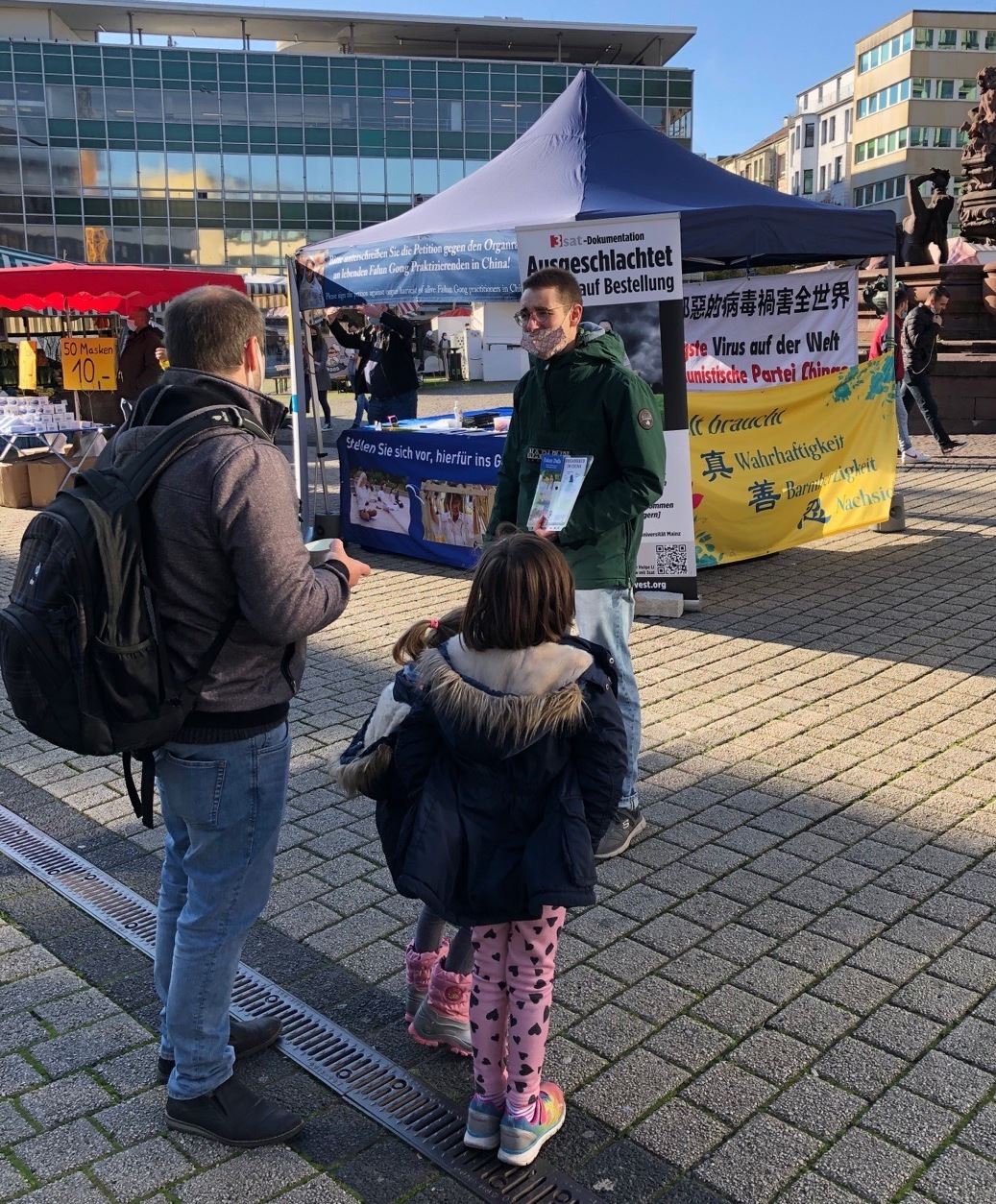 埃森市(Essen)的真相点坚持很多年了。法轮功学员定期到市中心步行街,人流聚集的地方讲真相。十月份,学员们又多次来到这里。不时有民众主动来了解真相,并为反迫害签名。