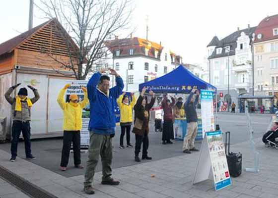 德国法轮功学员每周至少一次在慕尼黑不同地点举办活动,向人们展示法轮功的美好,同时揭露中共迫害法轮功,以及活体摘取法轮功学员器官的罪恶,并告诉德国民众,中共应为瘟疫的全球蔓延承担责任,呼吁人们远离中共。