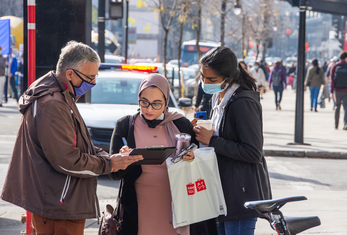 法轮功学员约翰·哈拉斯(John Halas)在路上向民众征签,呼吁加拿大政府用马格尼茨基法案,制裁对迫害法轮功负主要责任的中共高层官员。哈拉斯表示,在中共邪恶面前,人们不应该袖手旁观,每个人都发出声音,才能制止它行恶。他说:“很多人欣然签字,有人对我说:是的,我们知道中国在发生什么,我们必须制止。有一位女士毫不犹豫地签了字,她说:只要是阻止共产党杀人的请愿信,我都要签。”