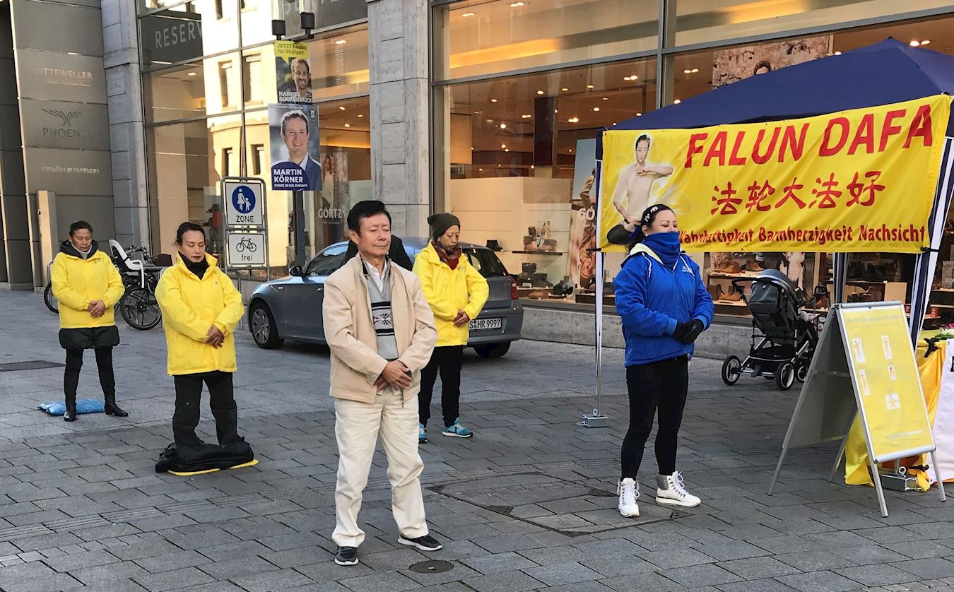 ![]() 图1:法轮功学员在展示功法 |
