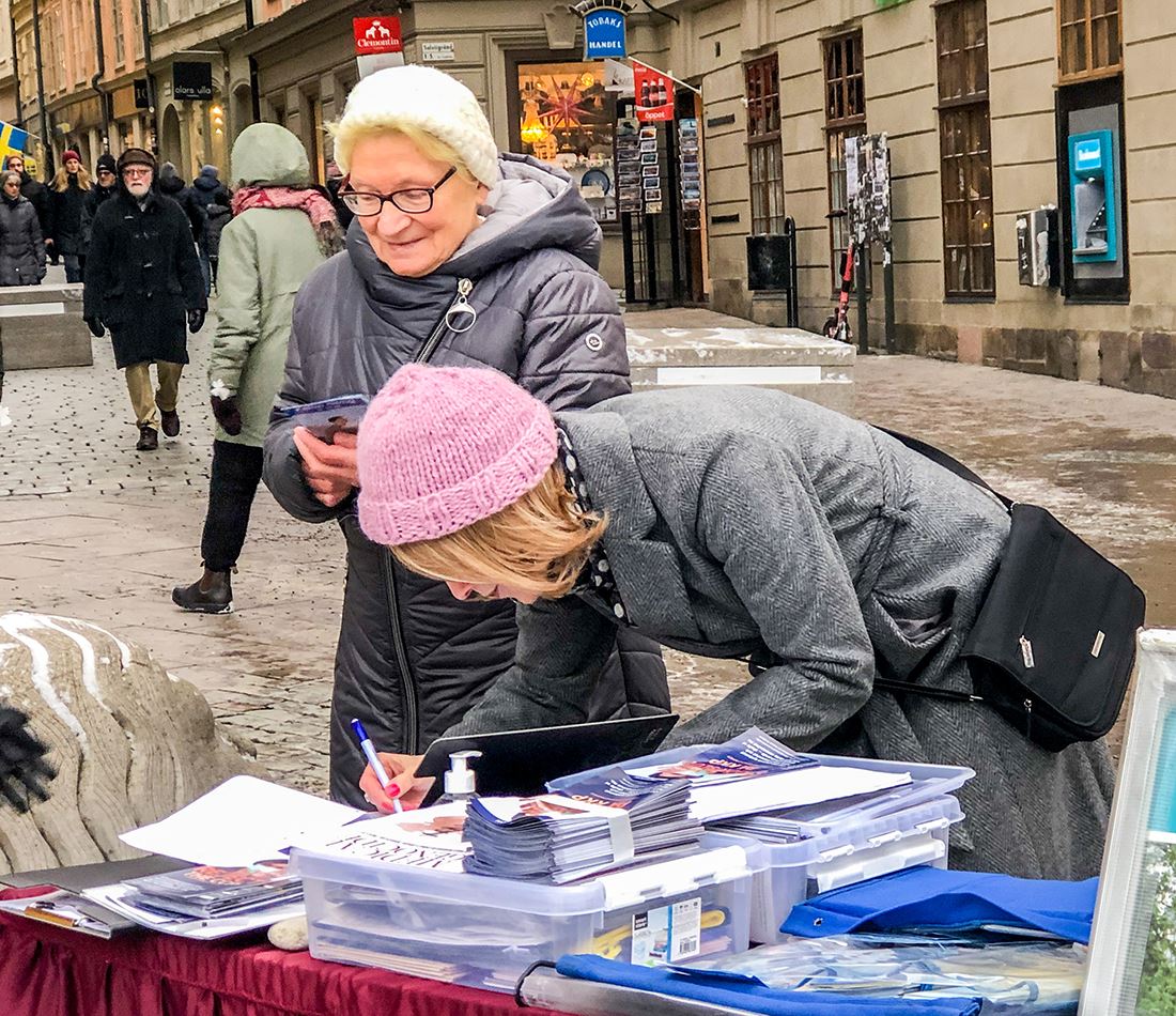 还有两位来自巴西的先生,看到学员在演示功法特意过来告诉学员,“我们来瑞典这些天,几乎每次经过这里都会遇到你们,无论天气好坏都出来告诉人们真相,你们真的是了不起!”两人上个星期就在这里签过名了。这次他们拍了一些照片,要放在自己的社交媒体上帮助传播真相、揭露中共的谎言。