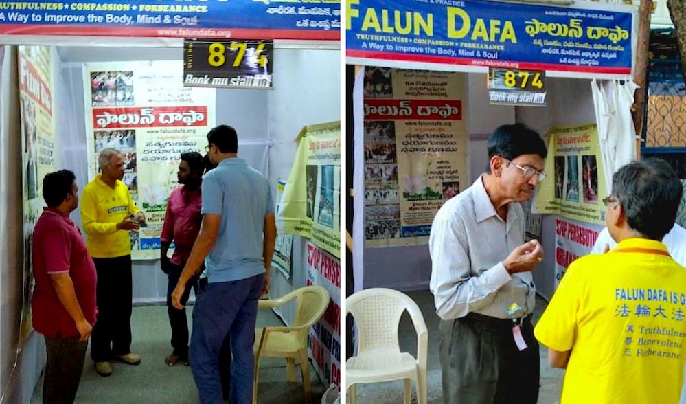 一年一度的“全印度工业展览会”于二零二零年一月一日在地处南部的印度第六大城市海得拉巴(Hydrabad)举办,历时一个半月。海得拉巴的部份法轮功学员参加了展览会,展位是免费的。这可以算是一个奇迹。那是二零零八年十二月底,学员找到当地管理展位的秘书讨论关于想办真相展位的事,可当时展位已经全部预订完毕。学员从他办公室出来时遇到了一位朋友并跟他问起了情况,学员谈到了想在此举办真相点,揭露在中国大陆被迫害被强行活摘法轮功学员器官的问题,并且也谈及了我们不是贸易单位,不盈利,只是一个修炼团体。这位朋友听后立即把学员带到了副总裁的办公室,学员与副总裁也说明了真相,副总裁立即命令他的助手给了法轮功学员一个免费展位,而且从此以后年年如此。