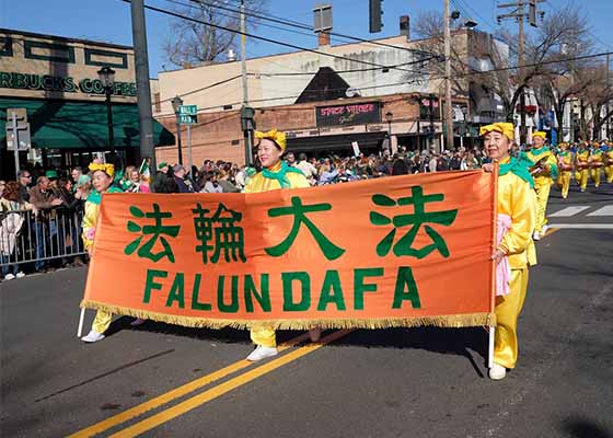 三月一日、七日和八日,纽约法轮功腰鼓队连续应邀参加了美国东部三个地区的圣派翠克节游行,所到之处受到当地民众的热烈欢迎。