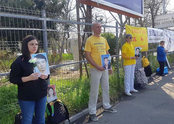 三月二十一日,罗马尼亚法轮功学员来到中国驻罗马尼亚大使馆前,抗议中共持续迫害法轮功的犯罪行为。