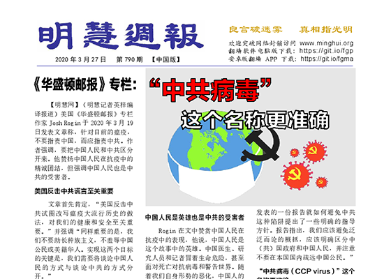 华盛顿邮报:“中共病毒”这个名称更准确