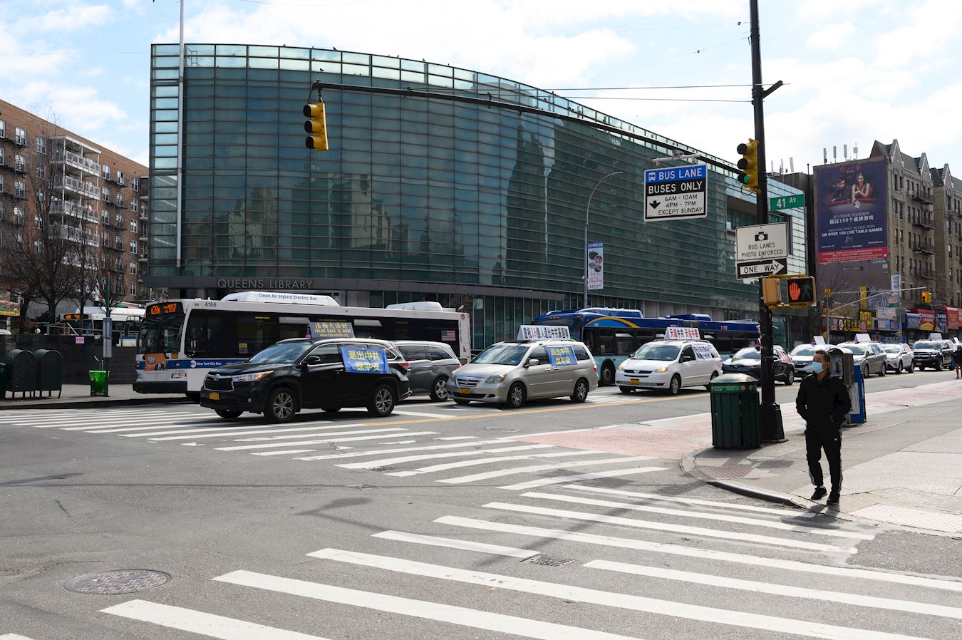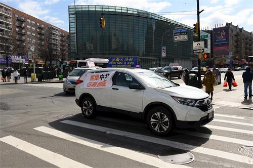 ![]() 图1~4:多台车身悬挂真相标语的车辆,在法拉盛中心区的凯辛娜大道、缅街、罗斯福大道等路段穿梭,吸引了路人的目光,有的商家停下手中的工作观看。 |
