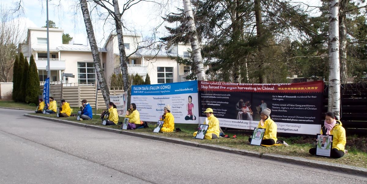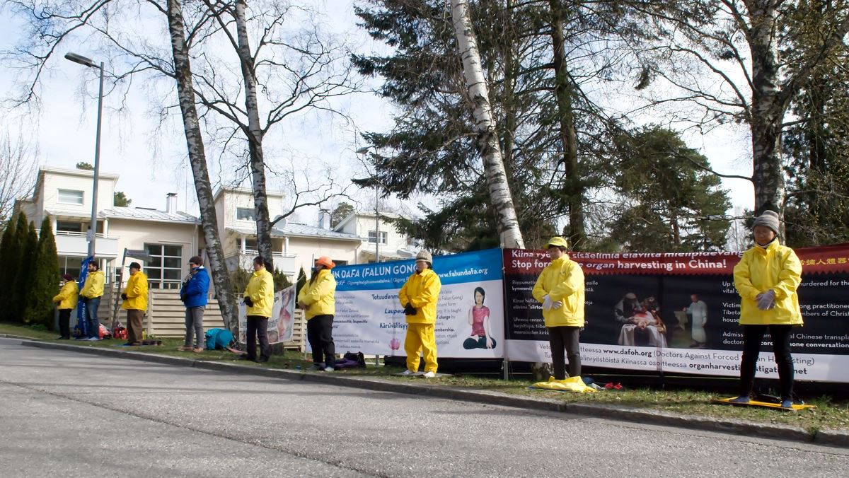 【明慧网二零二零年四月二十六日】一九九九年四月二十五日,万名中国法轮功学员为了维护对“真善忍”的信仰到北京和平上访,其规模与上访者的和平理性震惊了世界。二零二零年四月二十四日芬兰法轮功学员和往年一样,聚集到大使馆前,和平纪念二十一年前的这一天,抗议中共对法轮功学员的迫害。
