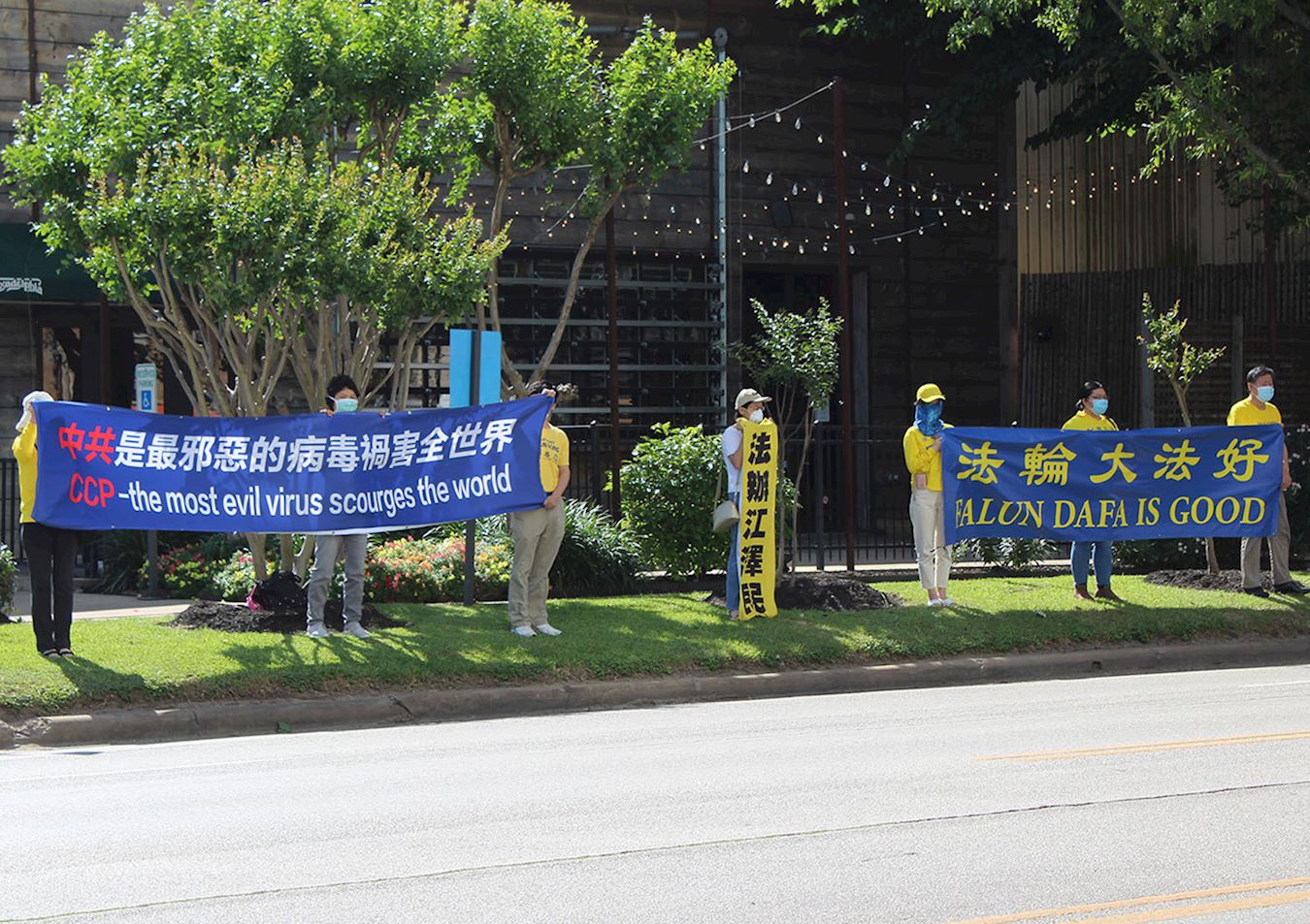 休斯顿中领馆前与中国城是学员经常讲真相的主要地点。真相组学员陈女士介绍,很多有缘人接受资料并且表示感谢,还有一些人能够驻足聆听,当场做了“三退”(退出中共党、团、队组织)。还有人表达心愿想要学法轮功。