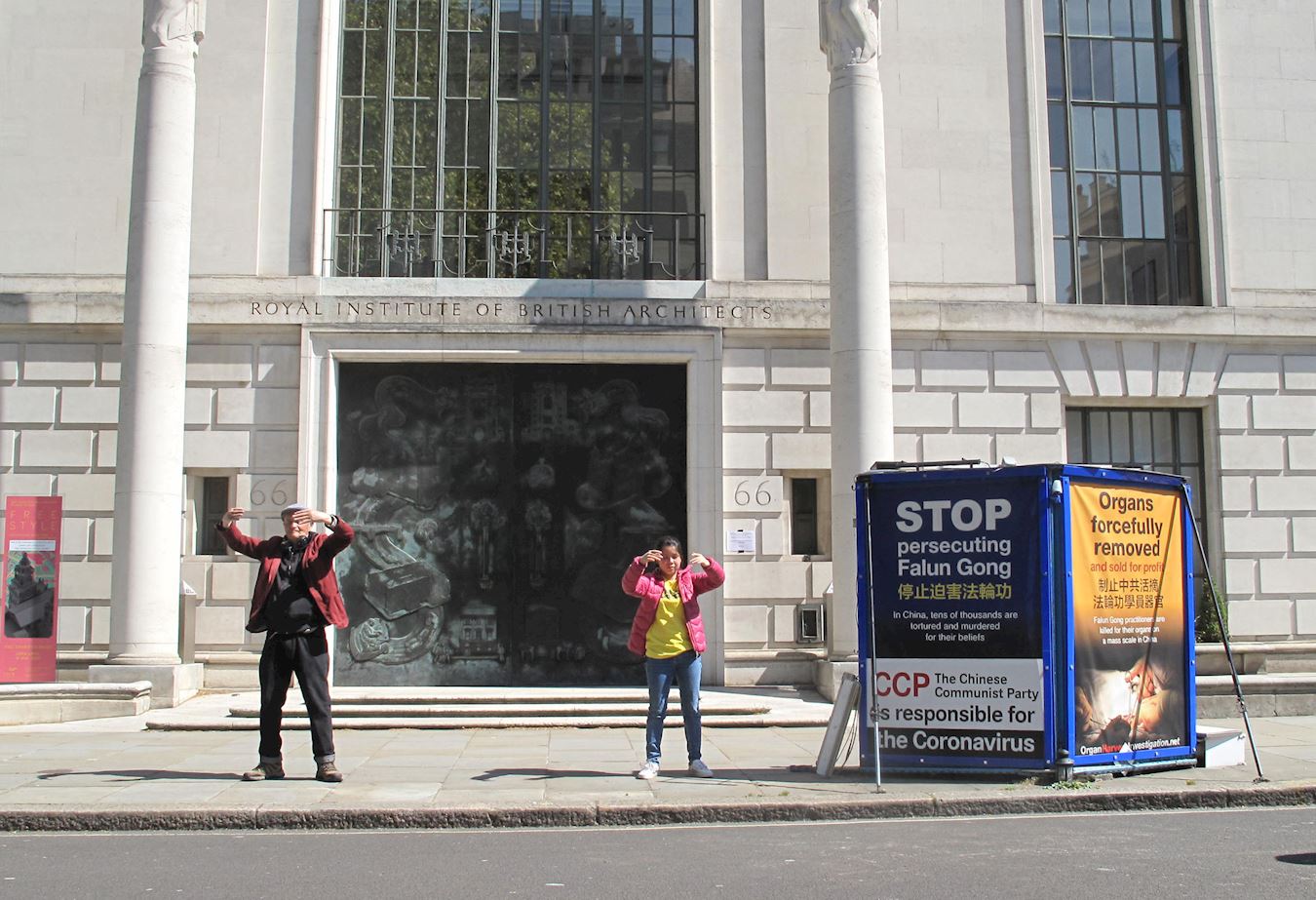 【明慧网二零二零年四月二十七日】(明慧记者方园伦敦采访报道)二零二零年四月二十五日,部份英国法轮功学员来到伦敦中使馆前的对面街道上,以展示功法的形式和平请愿,纪念上万名中国法轮功学员“四二五”和平上访二十一周年,同时传播法轮功的真相。