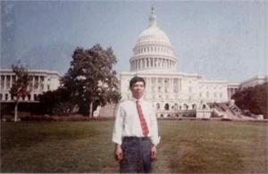 ![]() 一九九零年曹红如在美国国会山庄留影 |