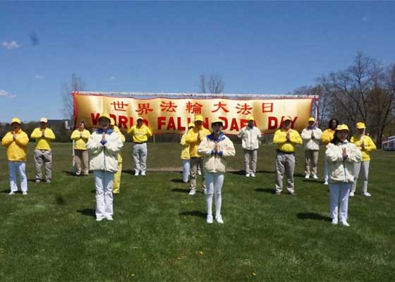 五月十二日,初春的密西根州难得有了晴朗的好天气,中西方法轮功学员聚集在特洛伊市公园里回顾得法和修炼的经历,庆祝世界法轮大法日。