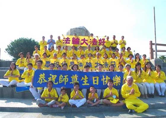 台湾台东地区部份法轮功学员五月九日来到台东海滨公园“迎曙之滨”地标前,向师父祝寿,并集体炼功,向民众传递法轮功的殊胜美好。
