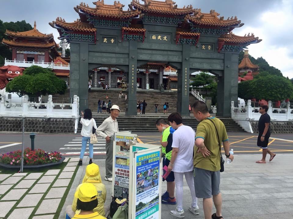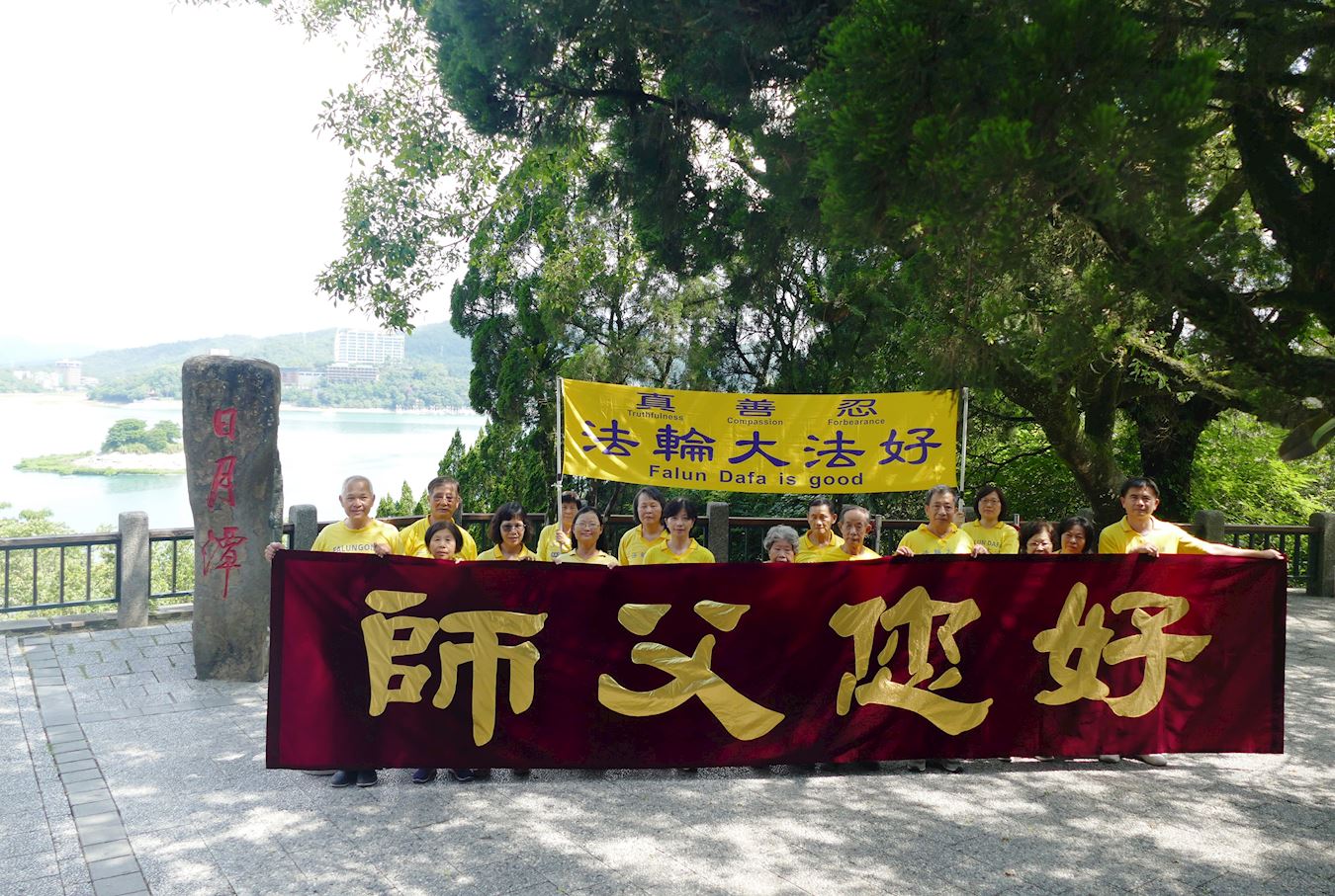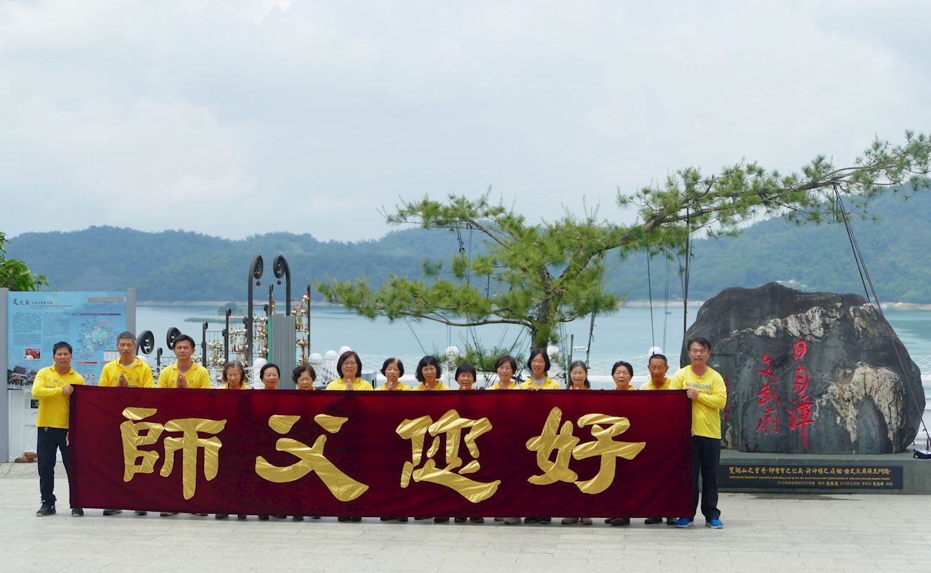 在日月潭文武庙和伊达劭讲真相的法轮功学员向师尊表达敬意与感谢。