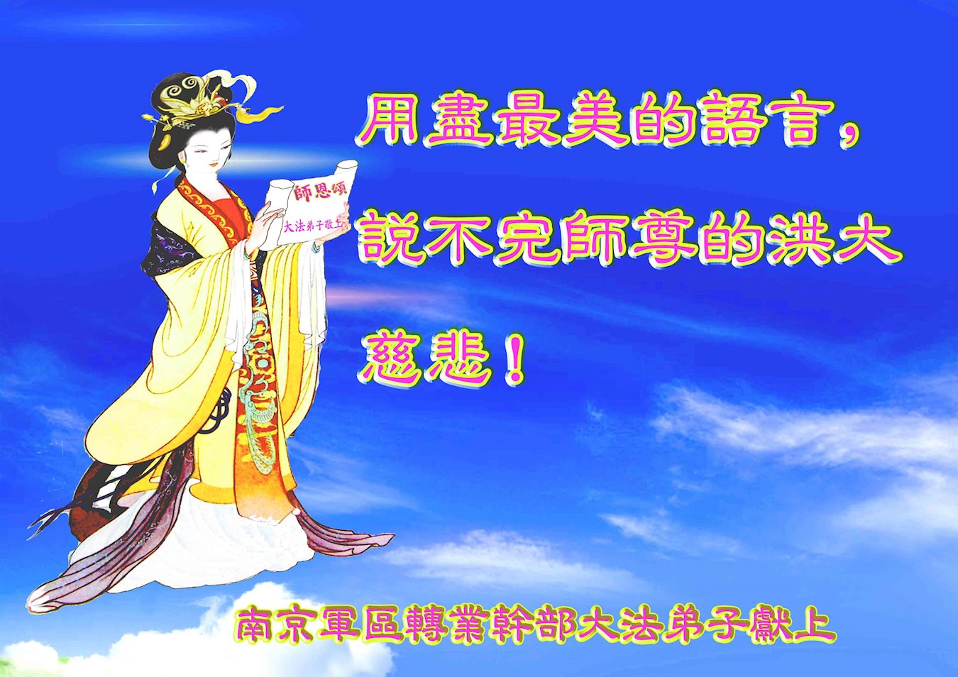 “回想着您多年的正法路,泪水啊再一次洒满胸前,有谁能知道您付出的心血,有谁能知道您承受的一切……”