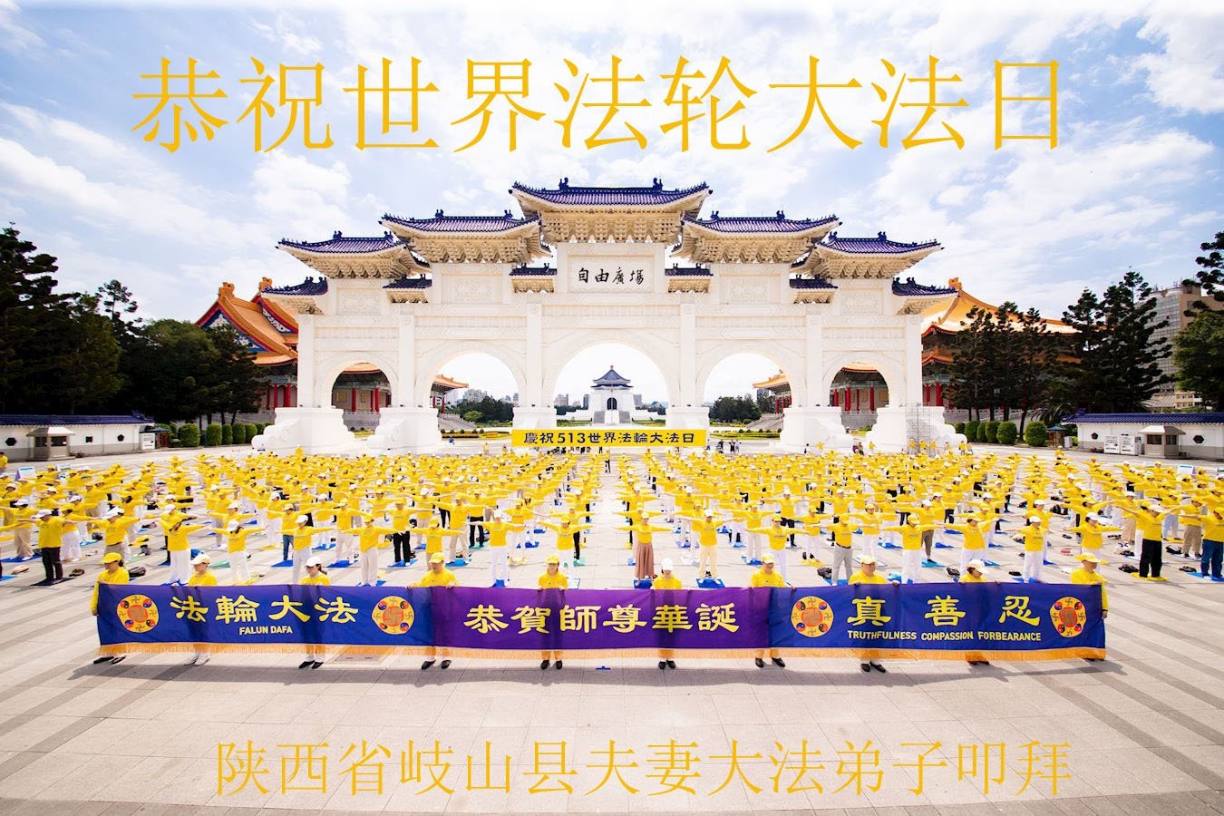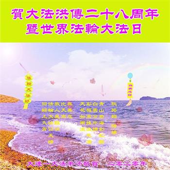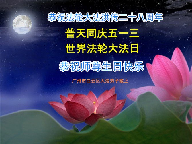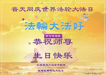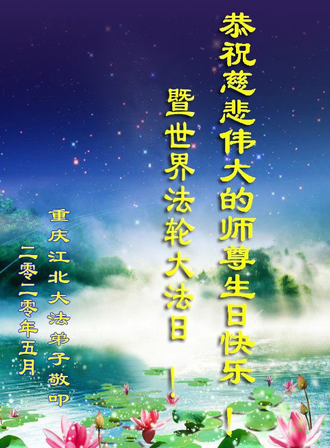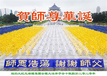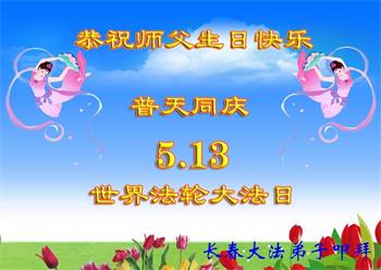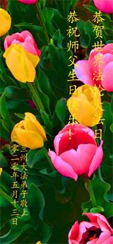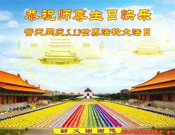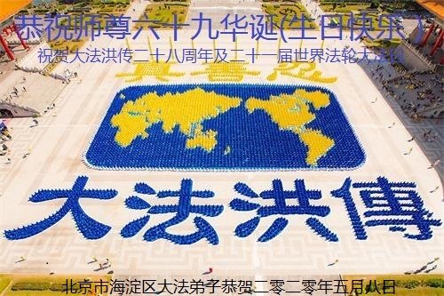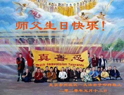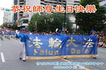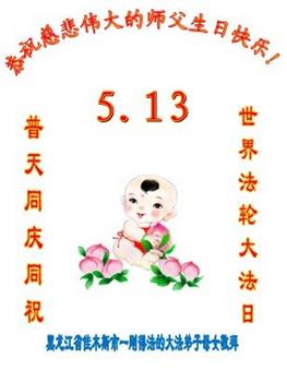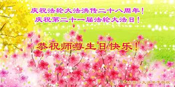 ![]() 图1:庆祝第二十一届世界法轮大法日,华盛顿DC全体大法弟子恭祝师尊生日快乐! |