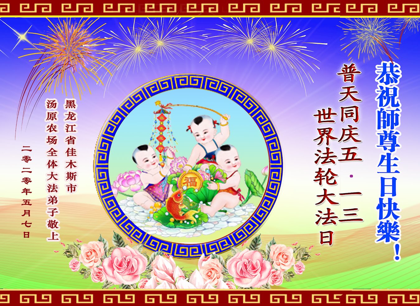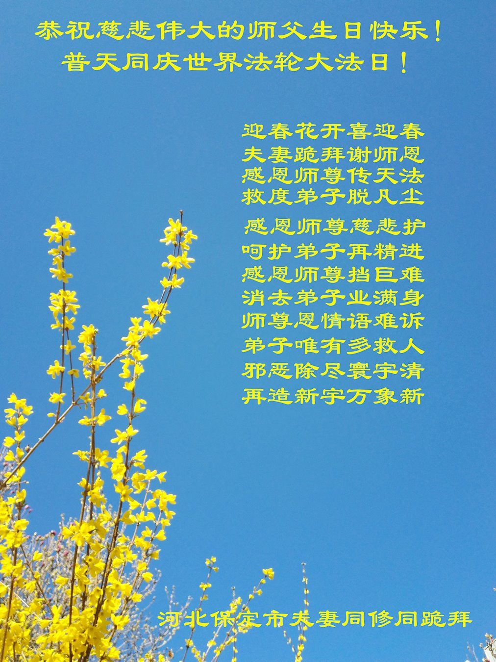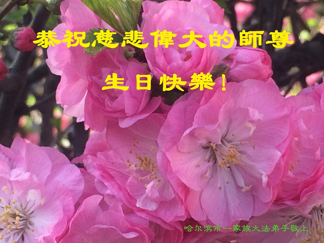 ![]() 图1:庆祝第二十一届世界法轮大法日,华盛顿DC全体大法弟子恭祝师尊生日快乐! |